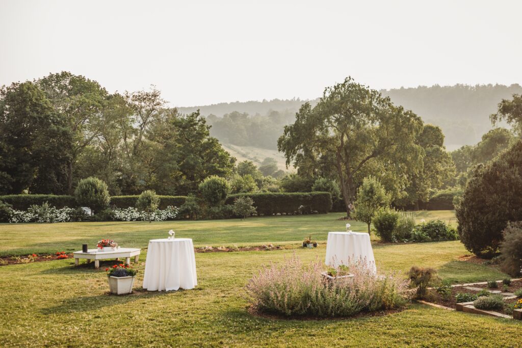 Our back outdoor space can be used for a variety of events. For a Reception, our back lawn can be tented or left open for dinner, lawn games, fire pit and more outdoor activities. This area is also home to our Vegetable and Herb gardens, which we kindly ask remain untouched, as it is a source of produce for our restaurant.